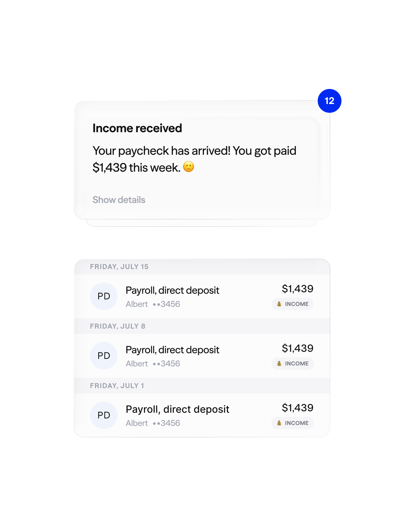Transfer funds instantly between your Albert accounts, send and receive checks, and manage your debit card in the app.