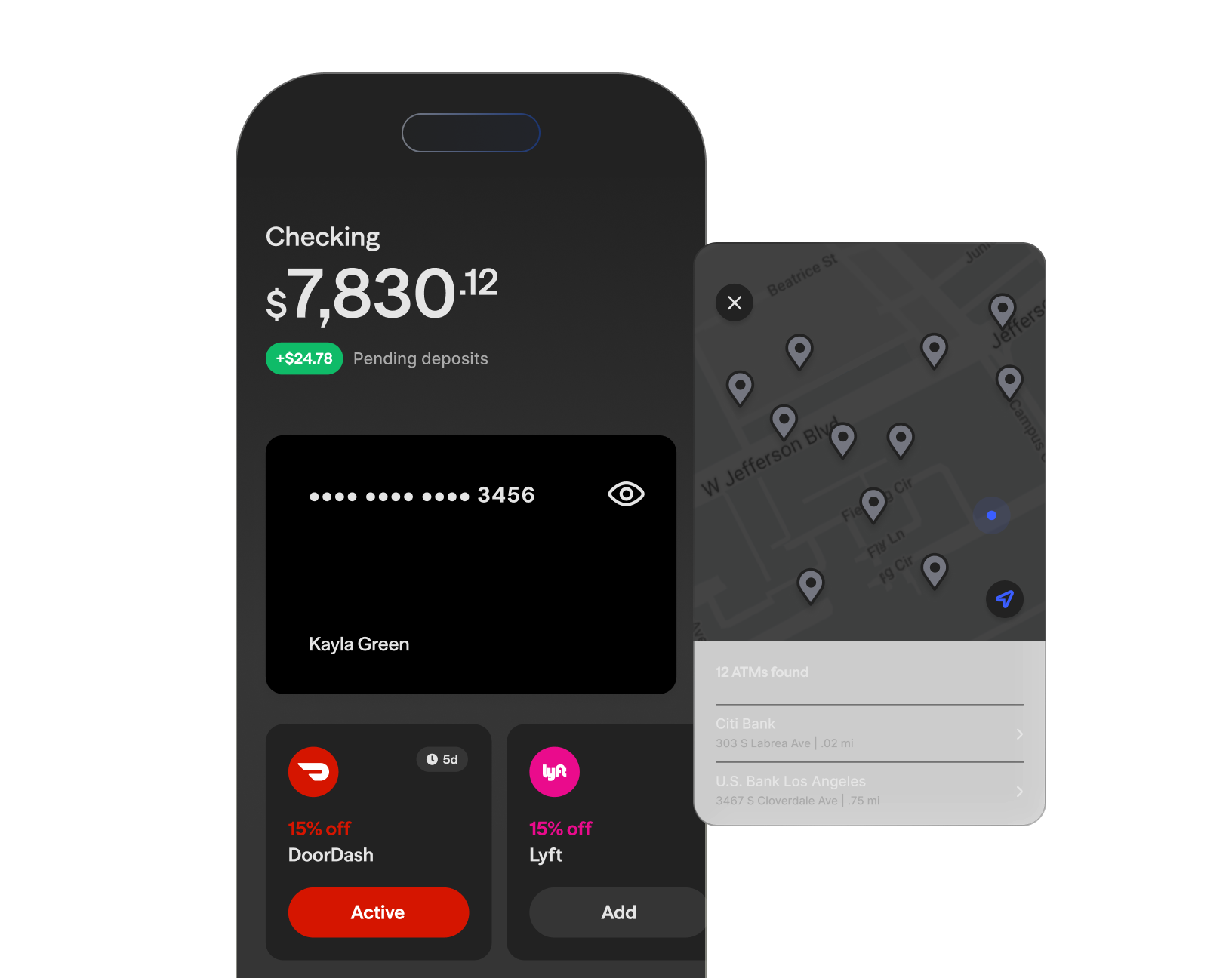 A debit card with cash back. Get your paycheck up to 2 days early with direct deposit. 55k+ fee-free ATMS.