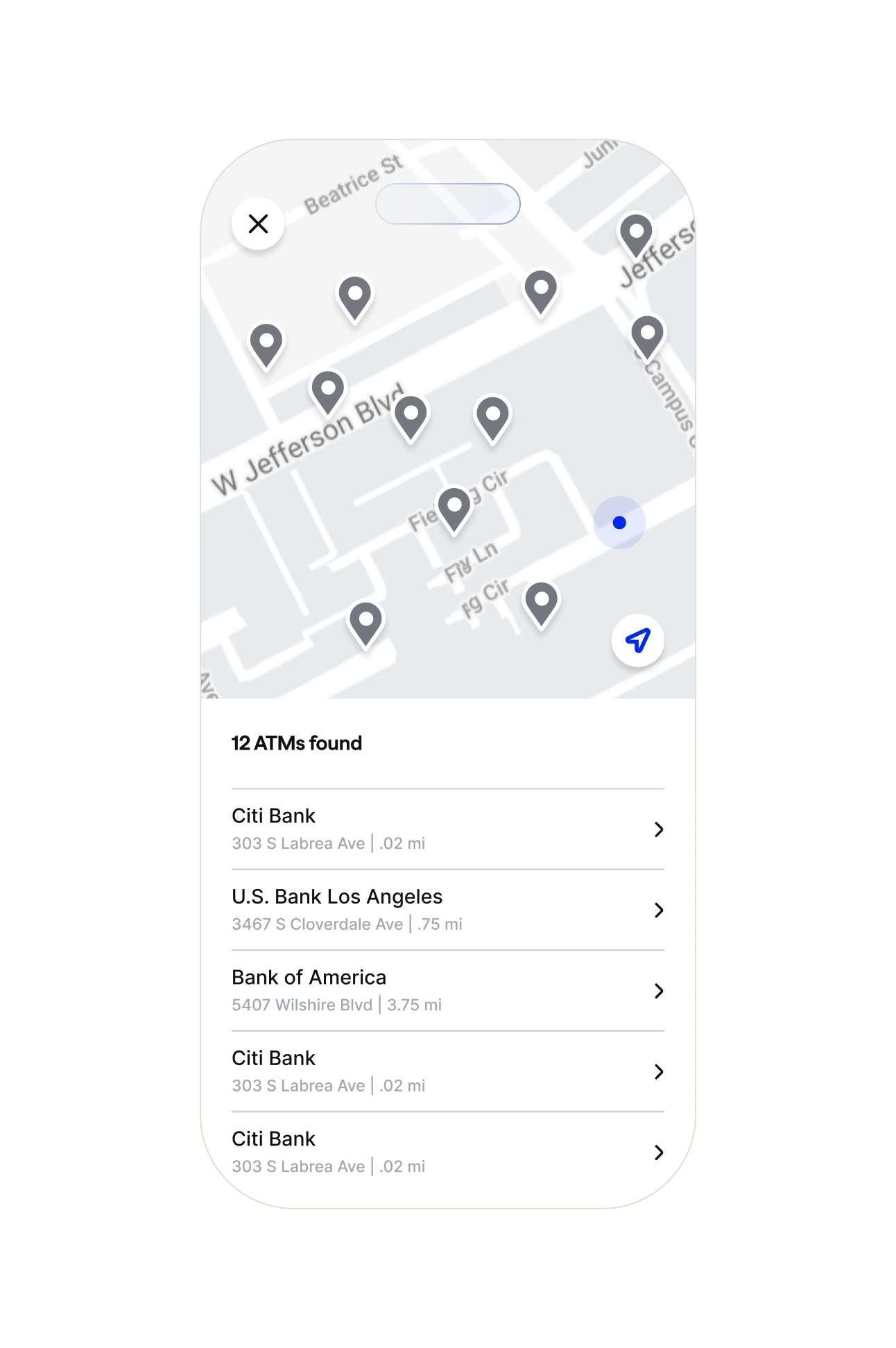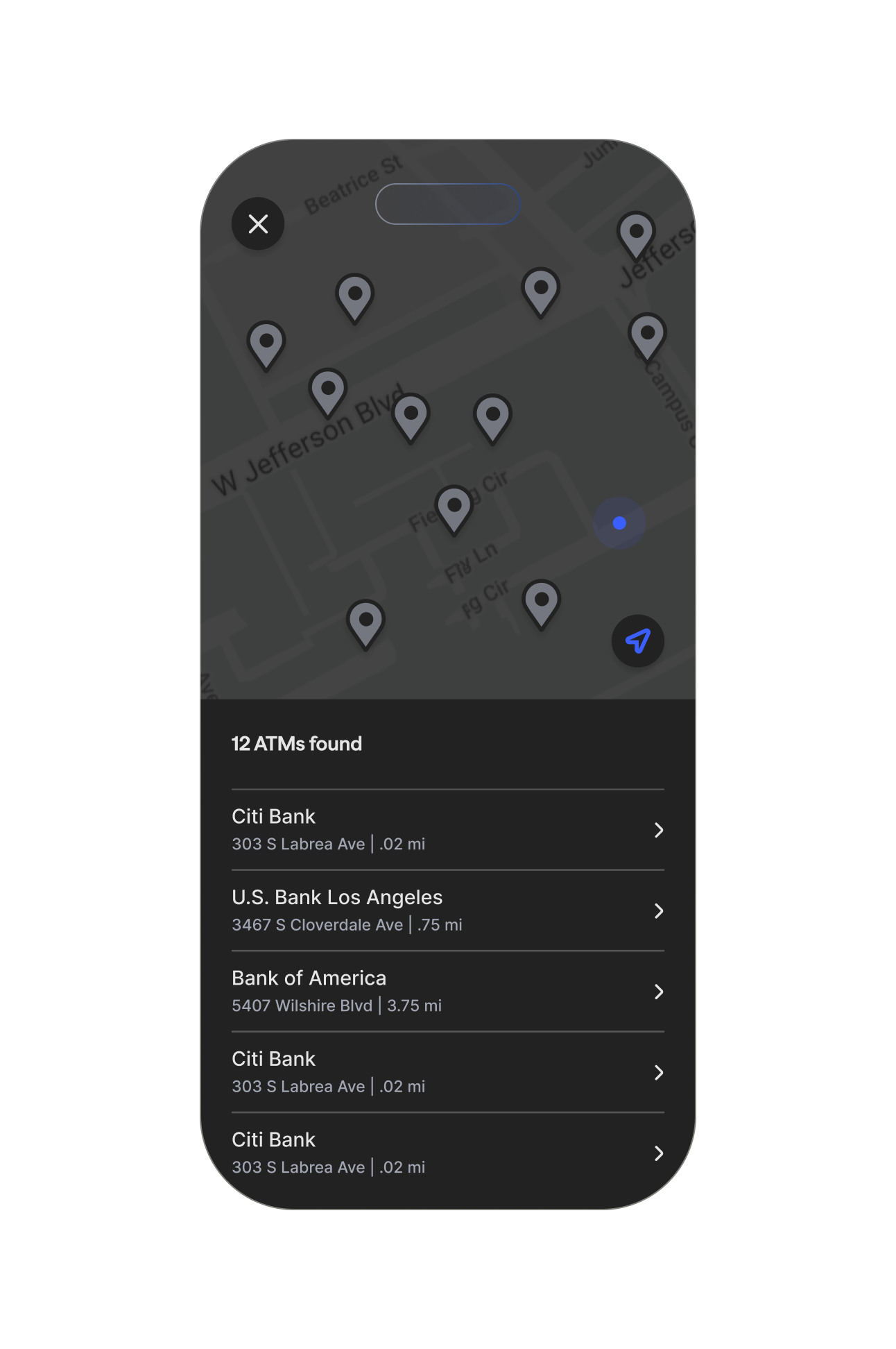 Withdraw cash at 55,000+ in-network ATMs. Locate nearby in-network ATMs in the app.