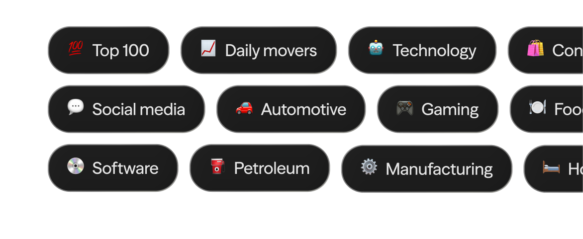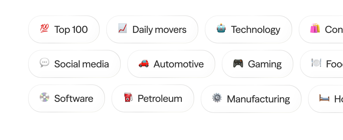 Browse stocks and ETFs by theme, daily movers, and other curated categories. See prices and key stats at a glance.