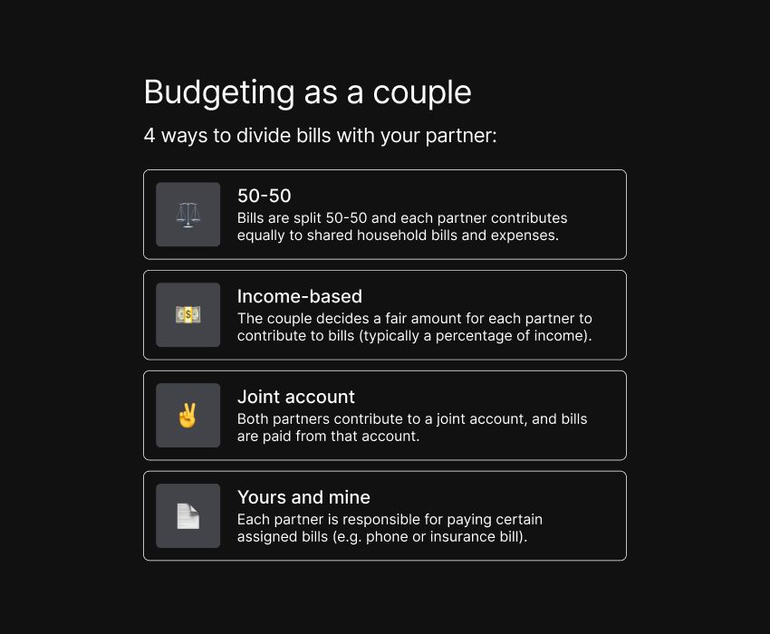 Setting clear goals will give you both focus and motivation. It ensures that you’re both working toward the same outcomes and understand why sticking to the budget is crucial. Being aligned will make large financial decisions and small daily habits easier to handle.