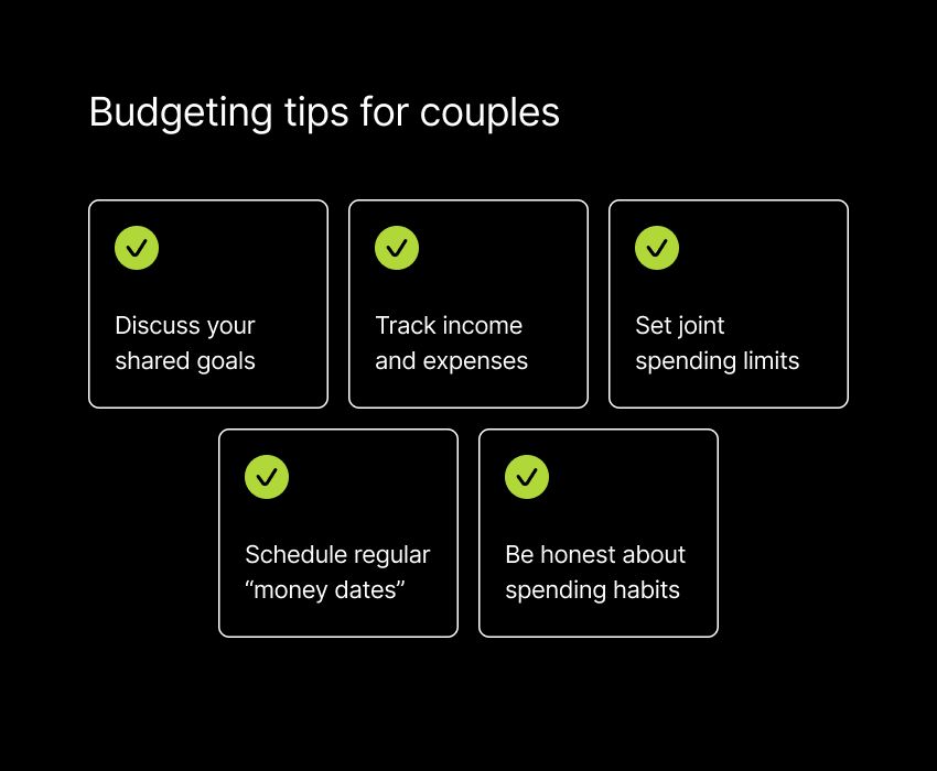 Start by having an open conversation about your individual and shared financial goals. Whether you want to save for a house, pay off debt, or plan a vacation, understanding each other’s priorities can help create a unified vision for your money.