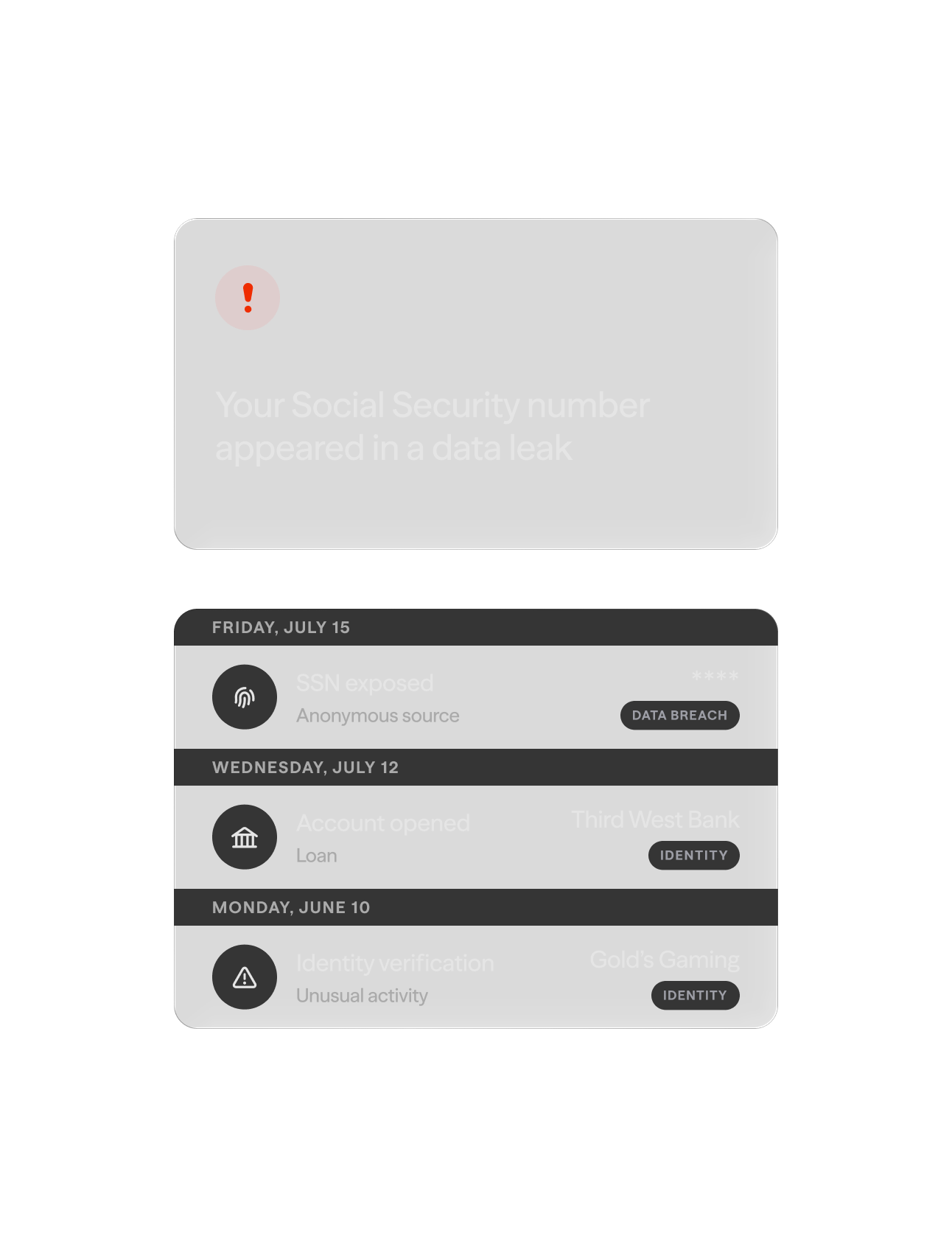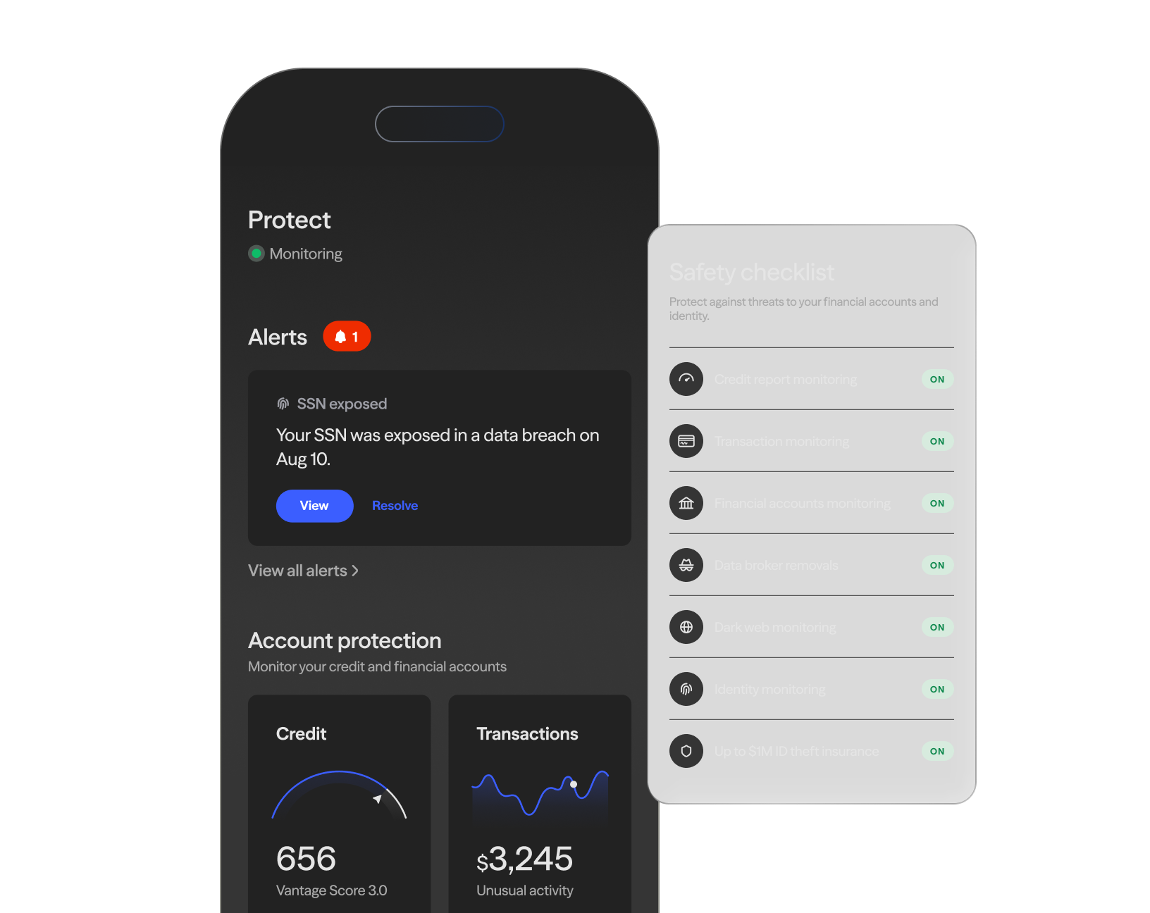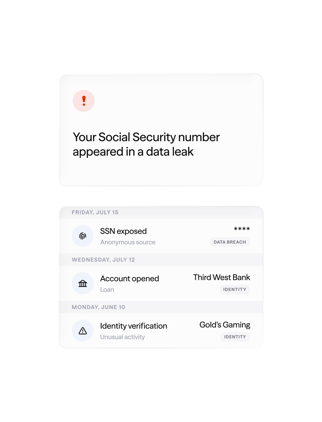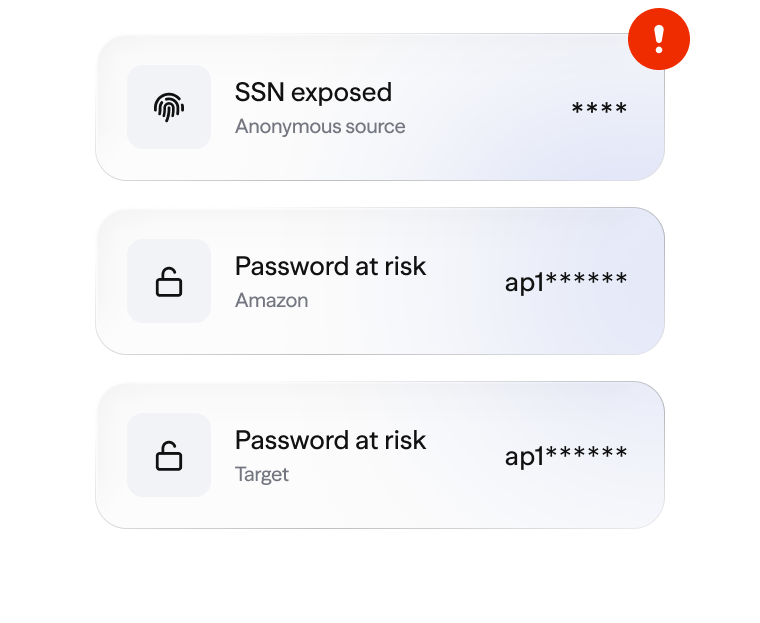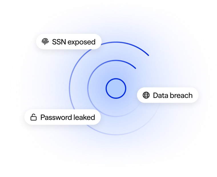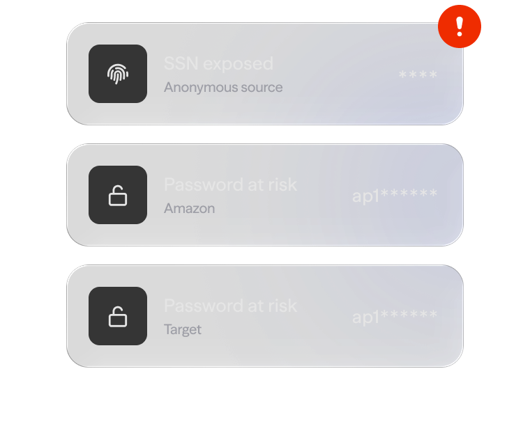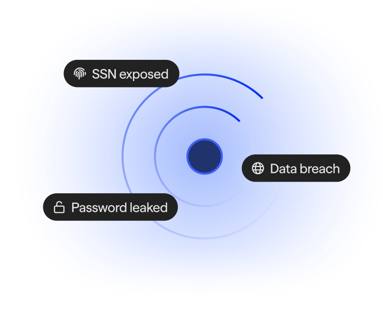 Get alerts when your SSN, passwords, or accounts are exposed in a data breach.