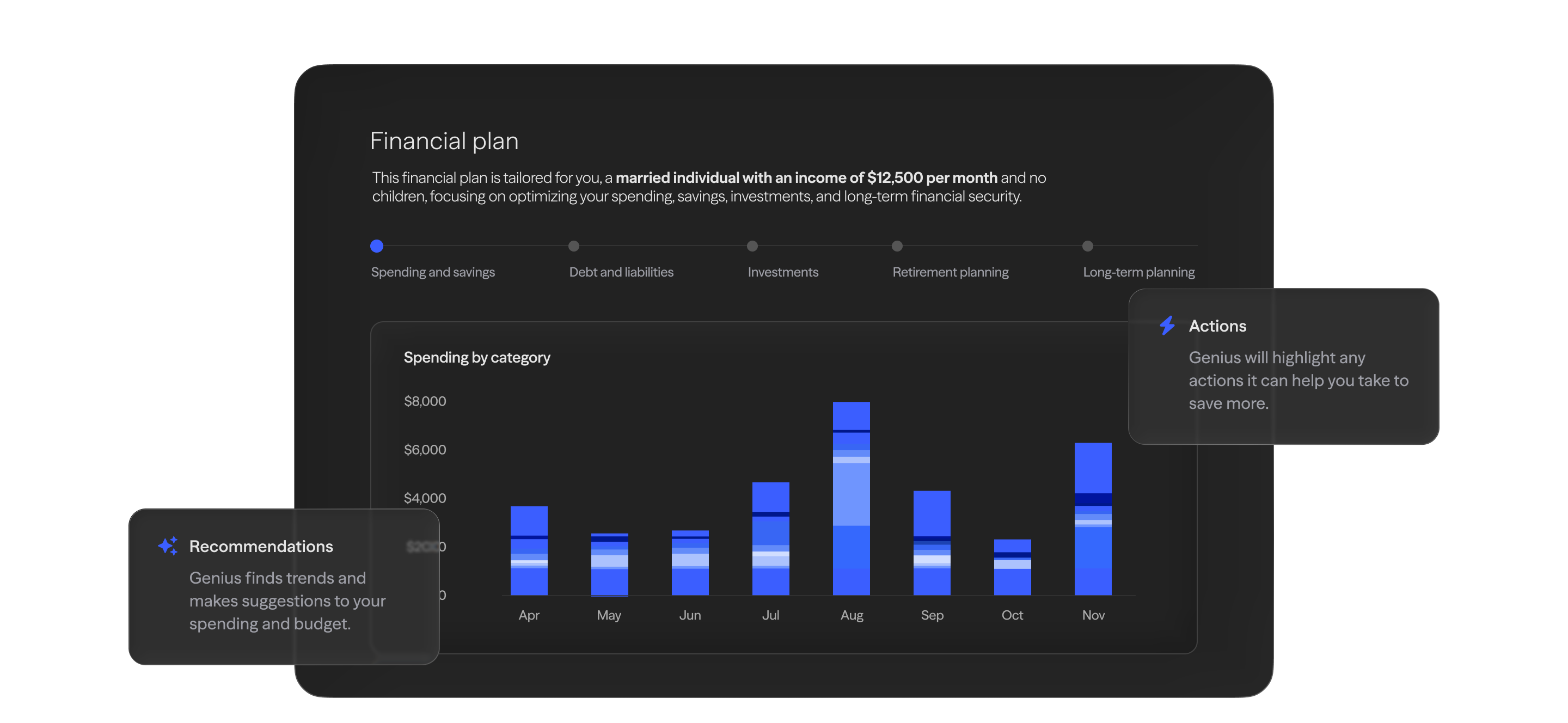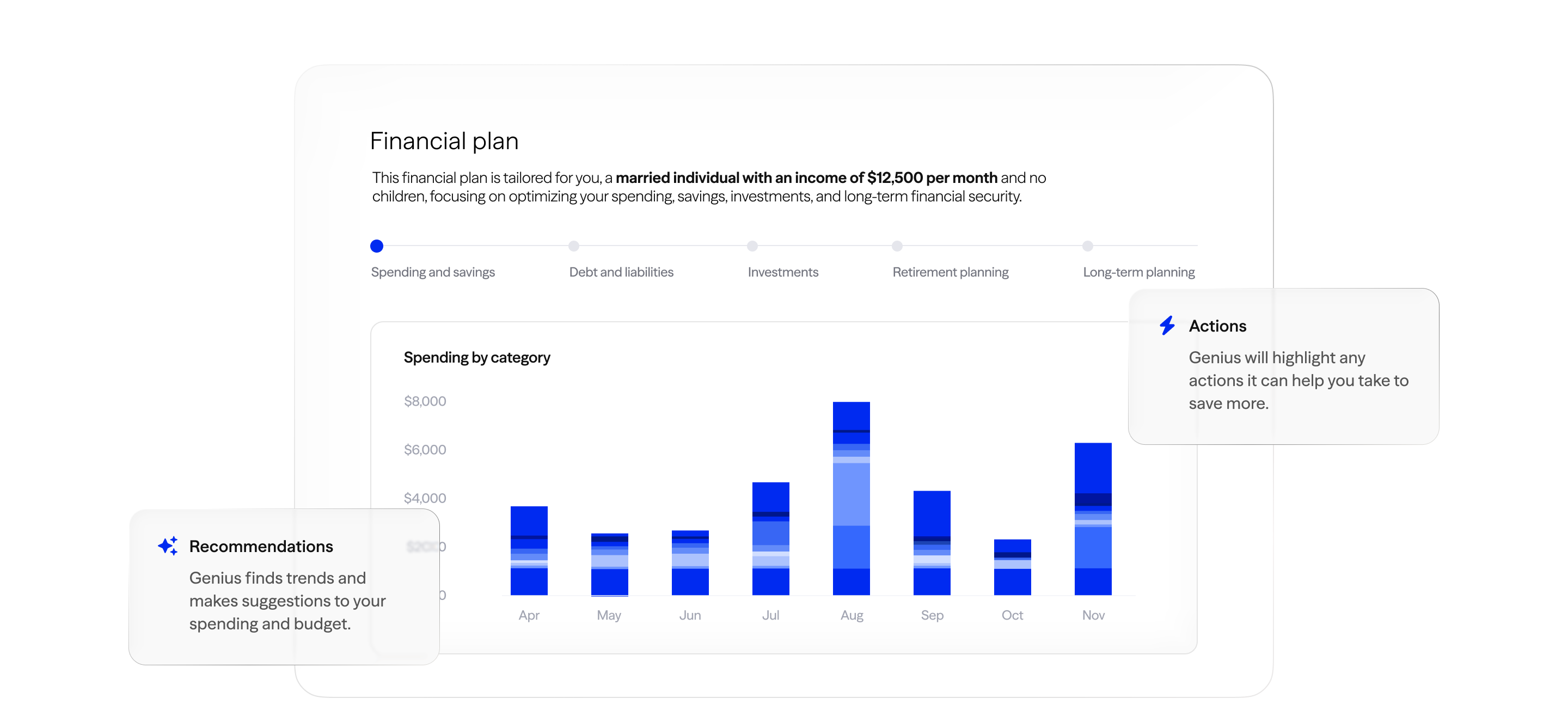 Genius learns about you and suggests relevant actions to help you build financial stability.